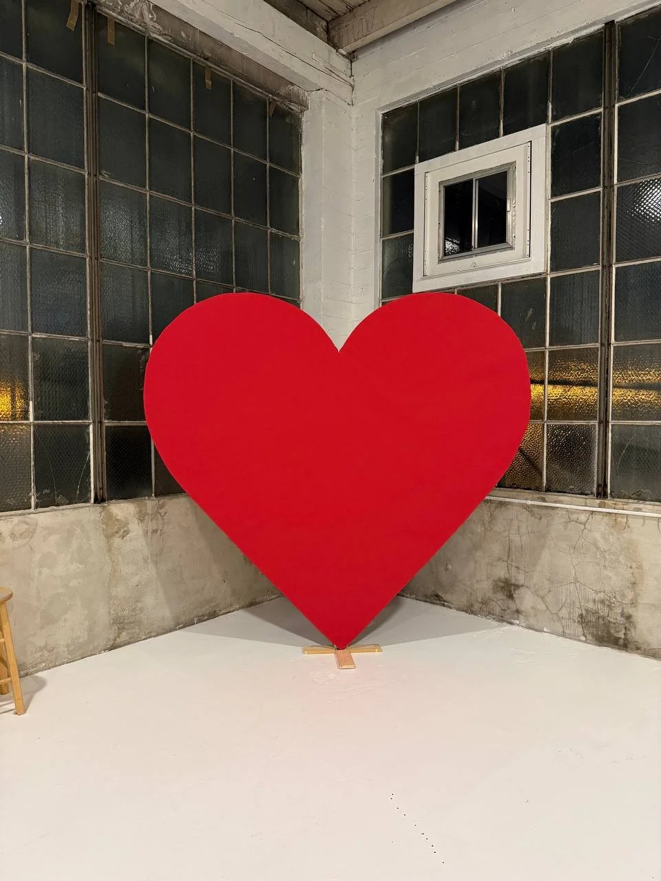 A big red heart is set up in the space, but it can be gently moved aside if needed.